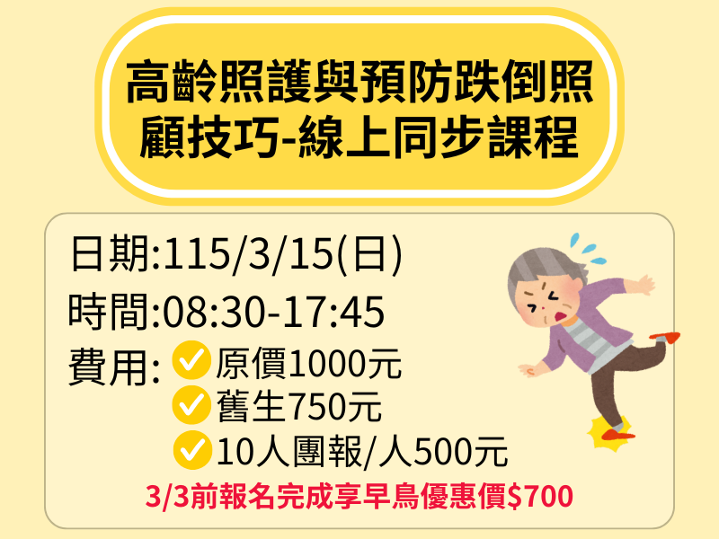【115年度】高齡照護與預防跌倒照顧技巧-線上同步課程
