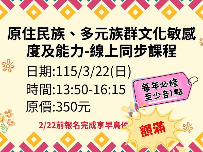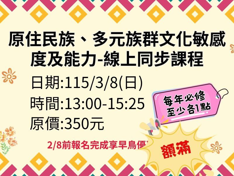 【115年度】原住民族、多元族群文化敏感度及能力-線上同步課程