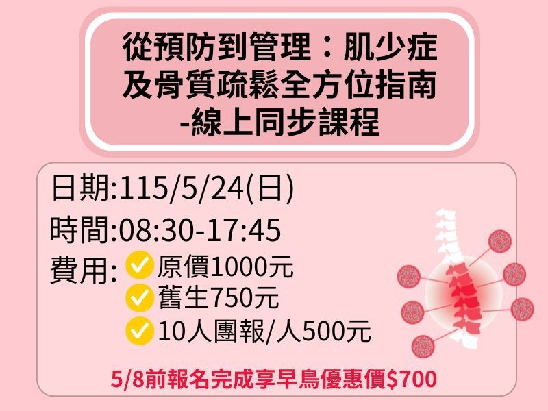 【115年度】從預防到管理:肌少症及骨質疏鬆全方位指南-線上同步課程
