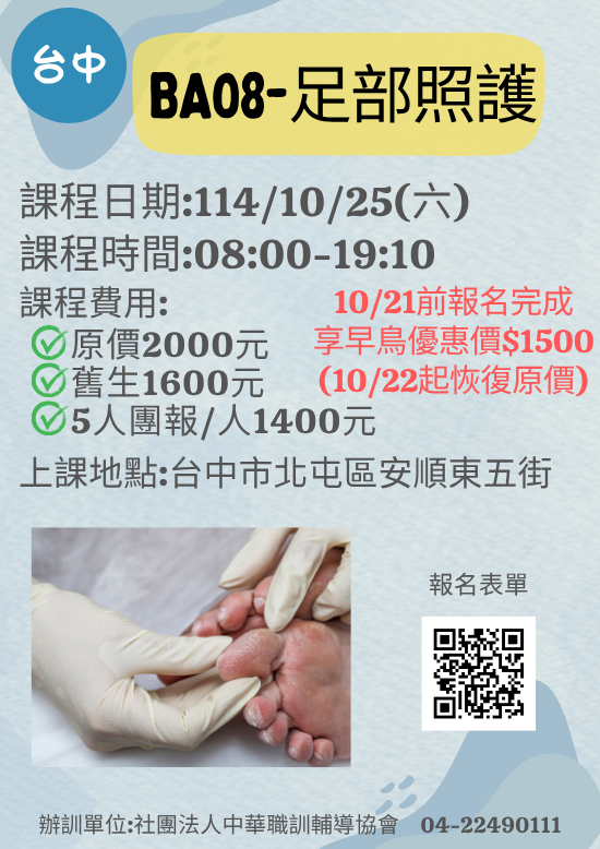 課程名稱:【台中】BA08足部照護