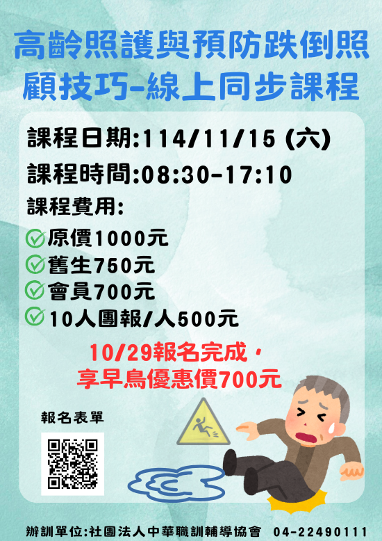 課程名稱:【114年度】高齡照護與預防跌倒照顧技巧-線上同步課程