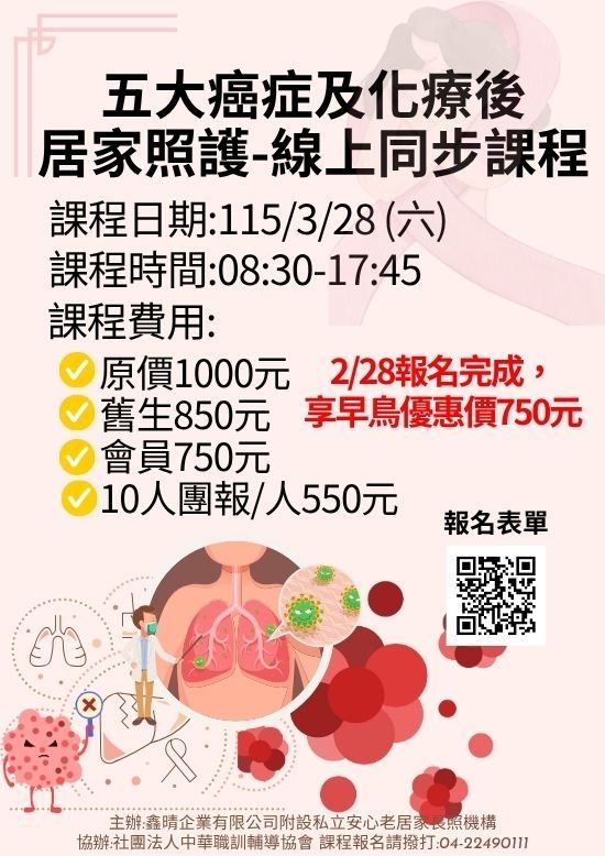 課程名稱:【115年度】五大癌症及化療後居家照護-線上同步課程