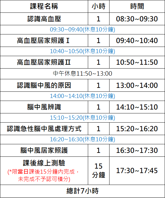 課程名稱:【115年度】高血壓及腦中風照護-線上同步課程