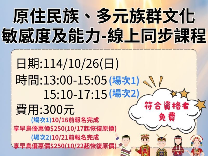 【114年度】原住民族、多元族群文化敏感度及能力-線上同步課程