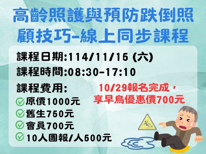 【114年度】高齡照護與預防跌倒照顧技巧-線上同步課程