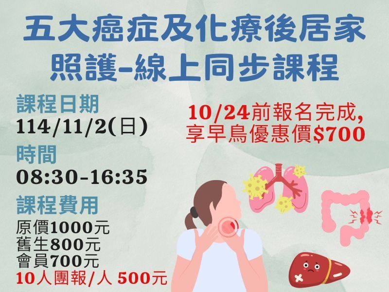 【114年度】五大癌症及化療後居家照護-線上同步課程
