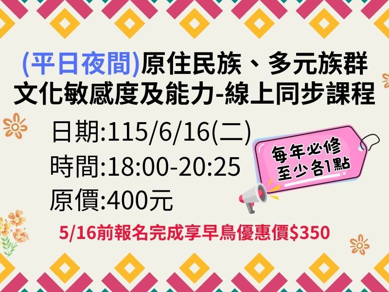【115年度】(夜間)原住民族、多元族群文化敏感度及能力-線上同步課程