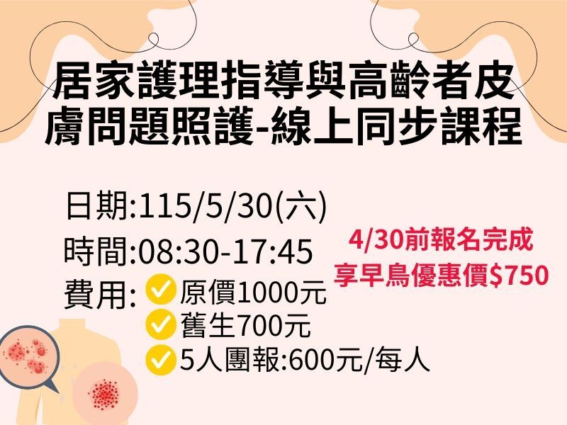 【115年度】居家護理指導與高齡者皮膚問題照護-線上同步課程